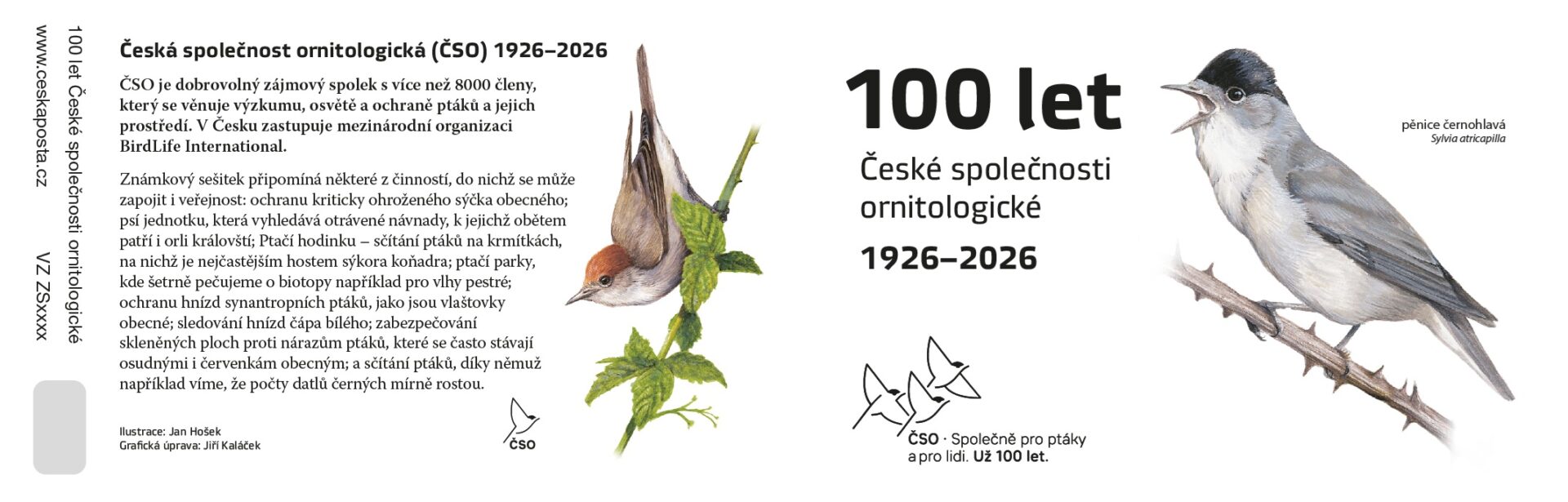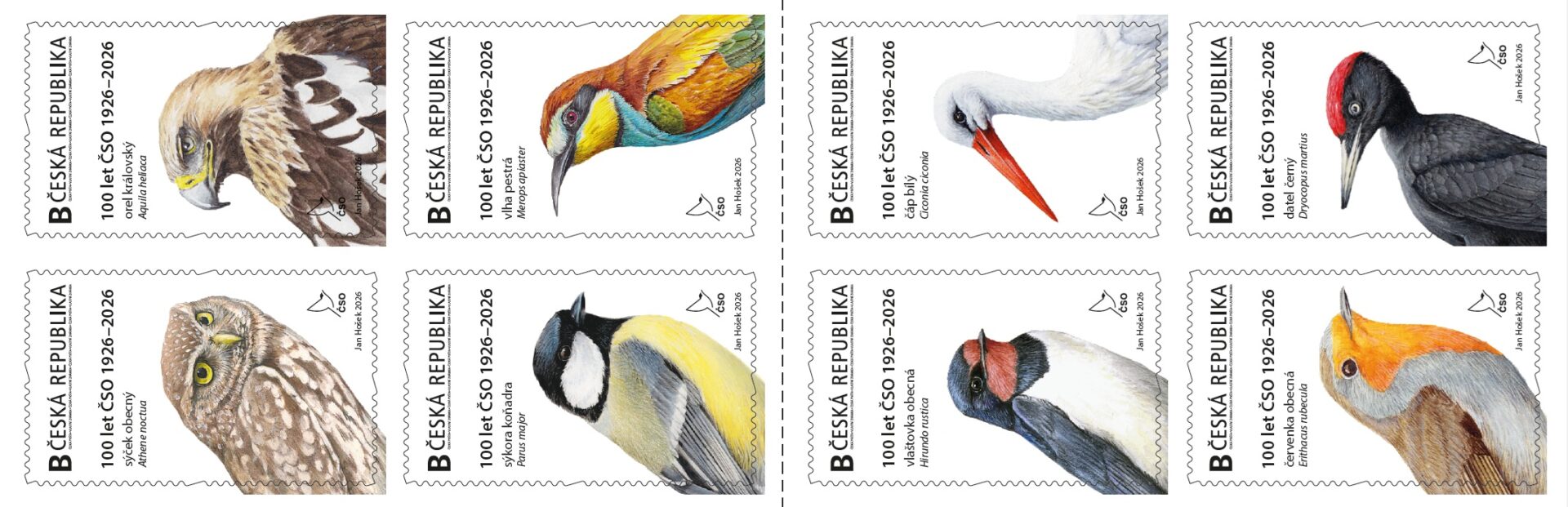 U příležitosti 100. výročí České společnosti ornitologické vychází 9. dubna 2026 unikátní emise poštovních známek, která spojuje krásu ilustrace s ochranou přírody. Známkový sešitek obsahuje 8 samolepicích známek s ilustracemi Jana Hoška, které představují pestrou činnost ČSO – od ochrany ohrožených druhů přes ptačí parky až po programy občanské vědy, do nichž se může zapojit i veřejnost.