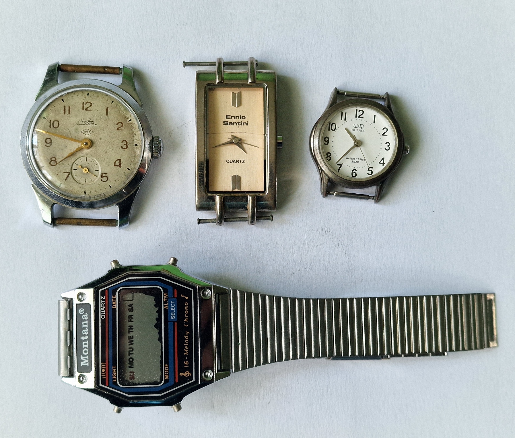 Prodám 4x hodinky v nálezovém stavu. Cena za vše.