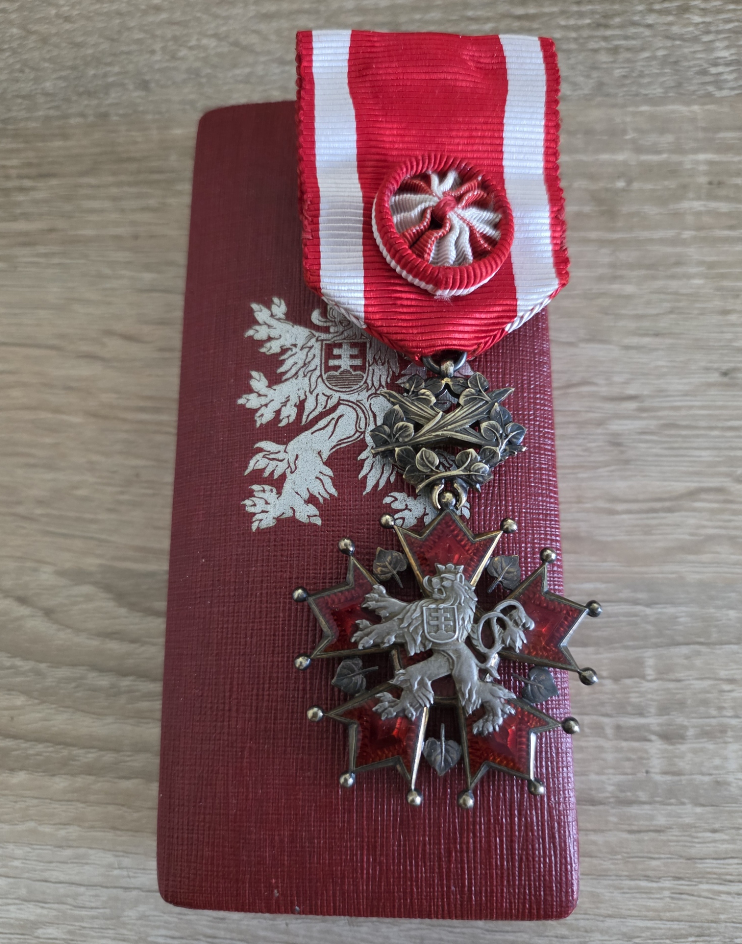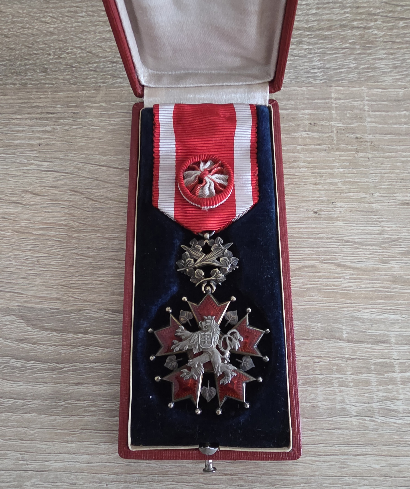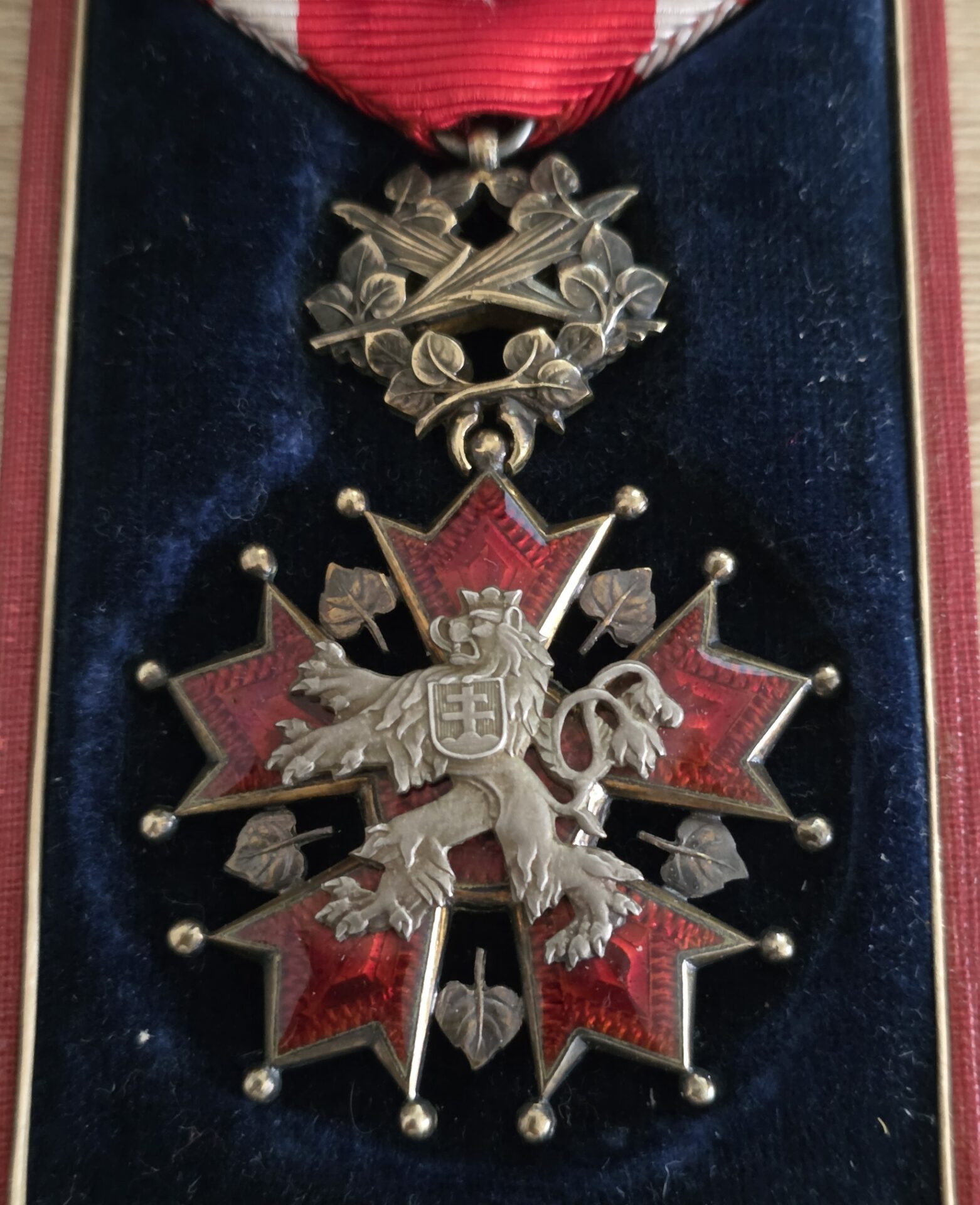 Prodám originální československý Řád Bílého lva – 4. třída s palmovou ratolestí, jedno z nejvýznamnějších státních vyznamenání, vyrobené ze zlaceného stříbra. Součástí je původní stuha s rozetou pro 4. třídu, která je ve velmi zachovalém stavu.
