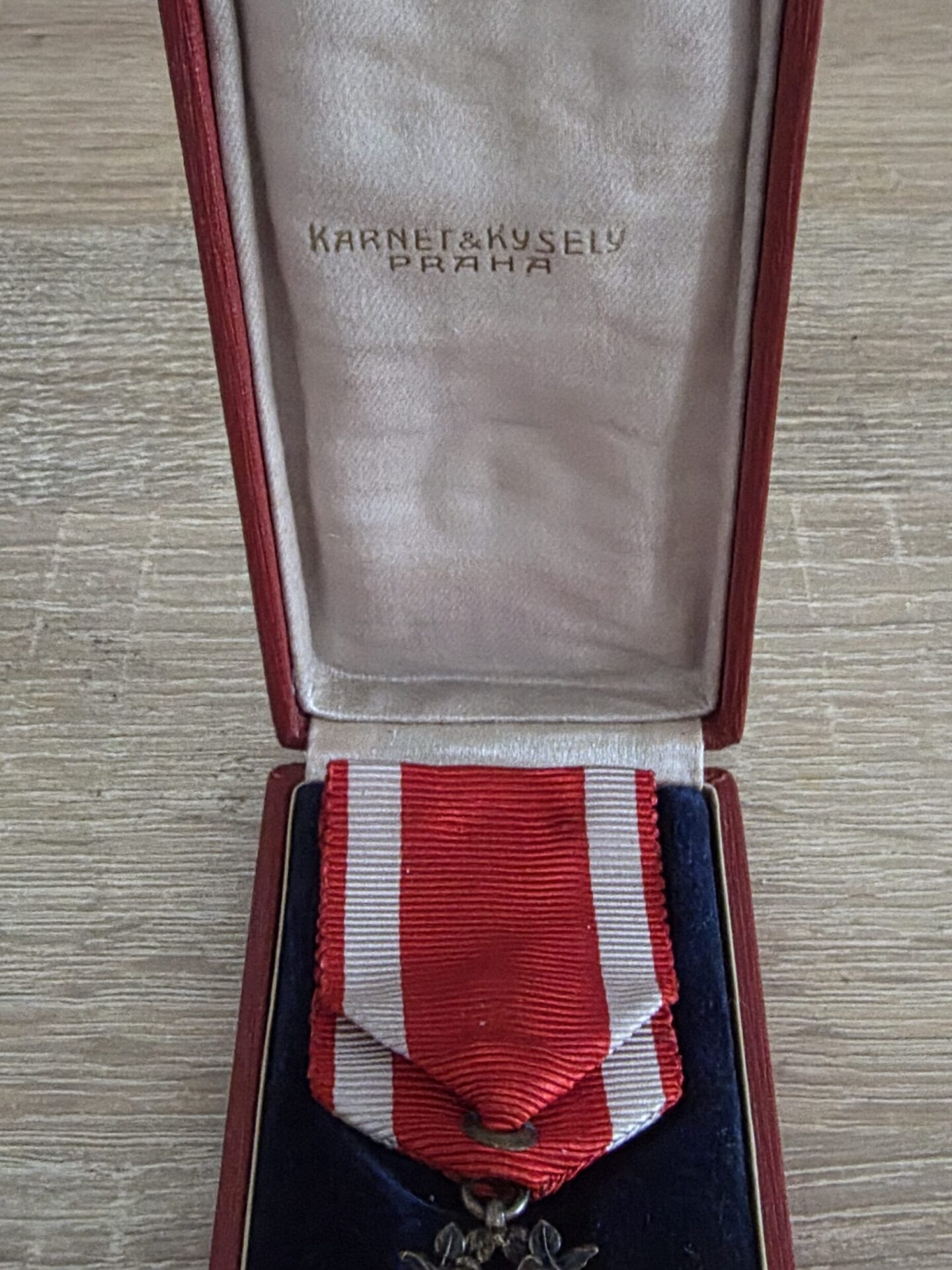 Vyznamenání je celkově ve velmi atraktivním sběratelském stavu – jemné, téměř nepatrné známky používání nijak nesnižují jeho estetickou ani historickou hodnotu. Značeno renomovaným výrobcem Karnet Kyselý (KK 900), což podtrhuje jeho autenticitu a sběratelskou prestiž.