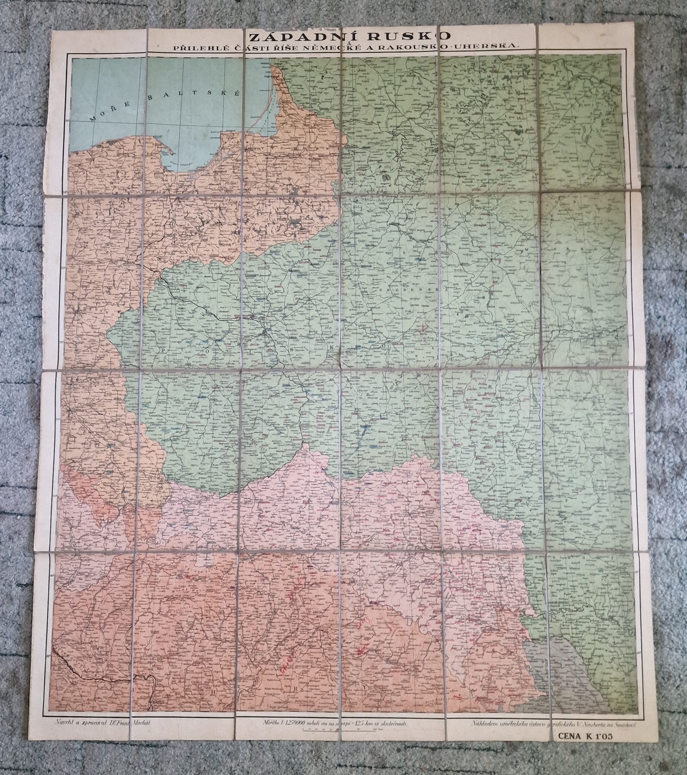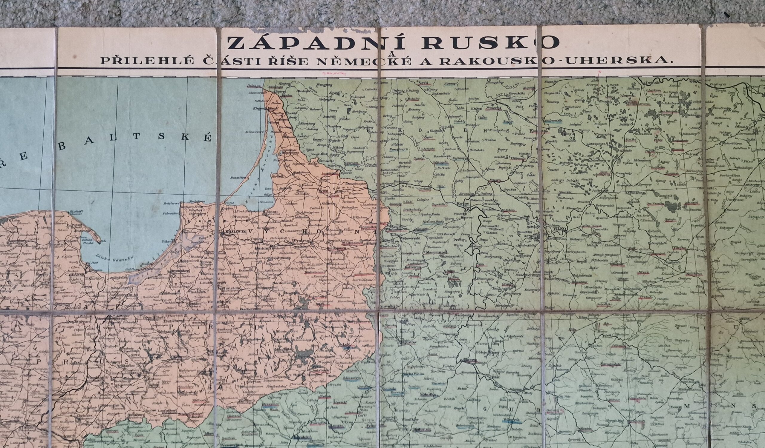 Nabízím originální historickou mapu „Západní Rusko a přilehlé části říše Německé a Rakousko-Uherska“, navrhl a zpracoval Dr. František Machát, vydal Umělecký ústav grafický V. Neubert na Smíchově.