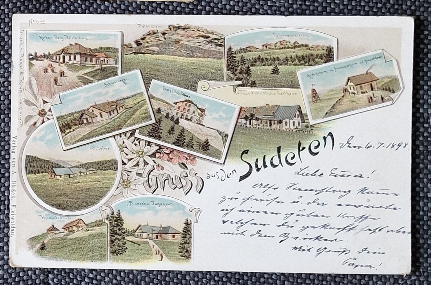 Historická pohlednice Sudet z roku 1898, perfektní pro sběratele. Poštovné 90 Kč, doprava Zásilkovnou.