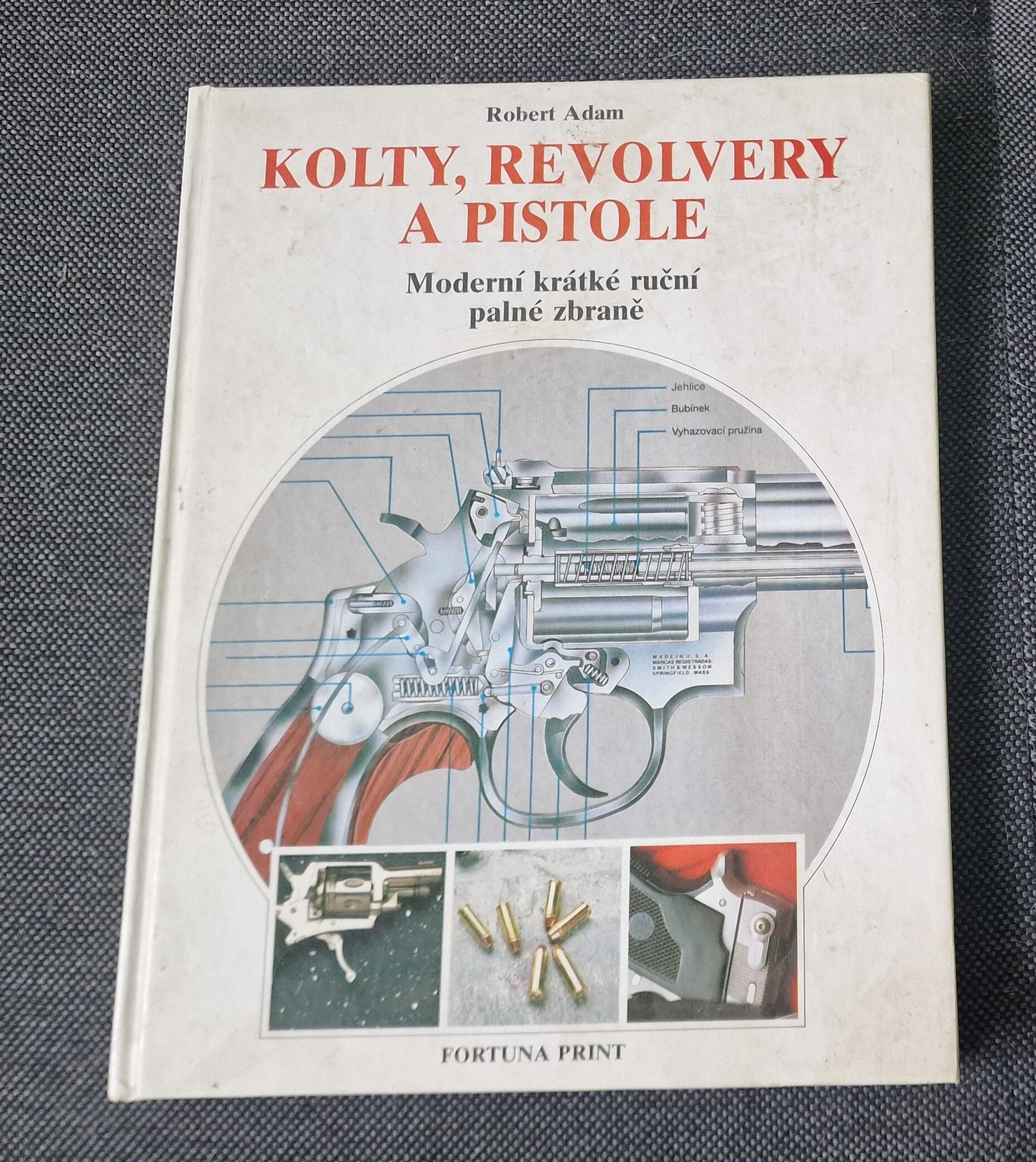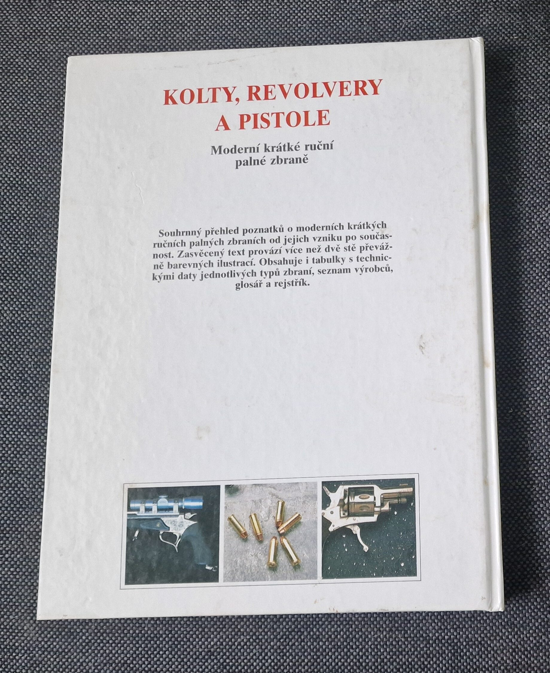 Prodám knihu ‘Kolty, revolvery a pistole’ – přehled moderních zbraní s ilustracemi a technickými daty.
