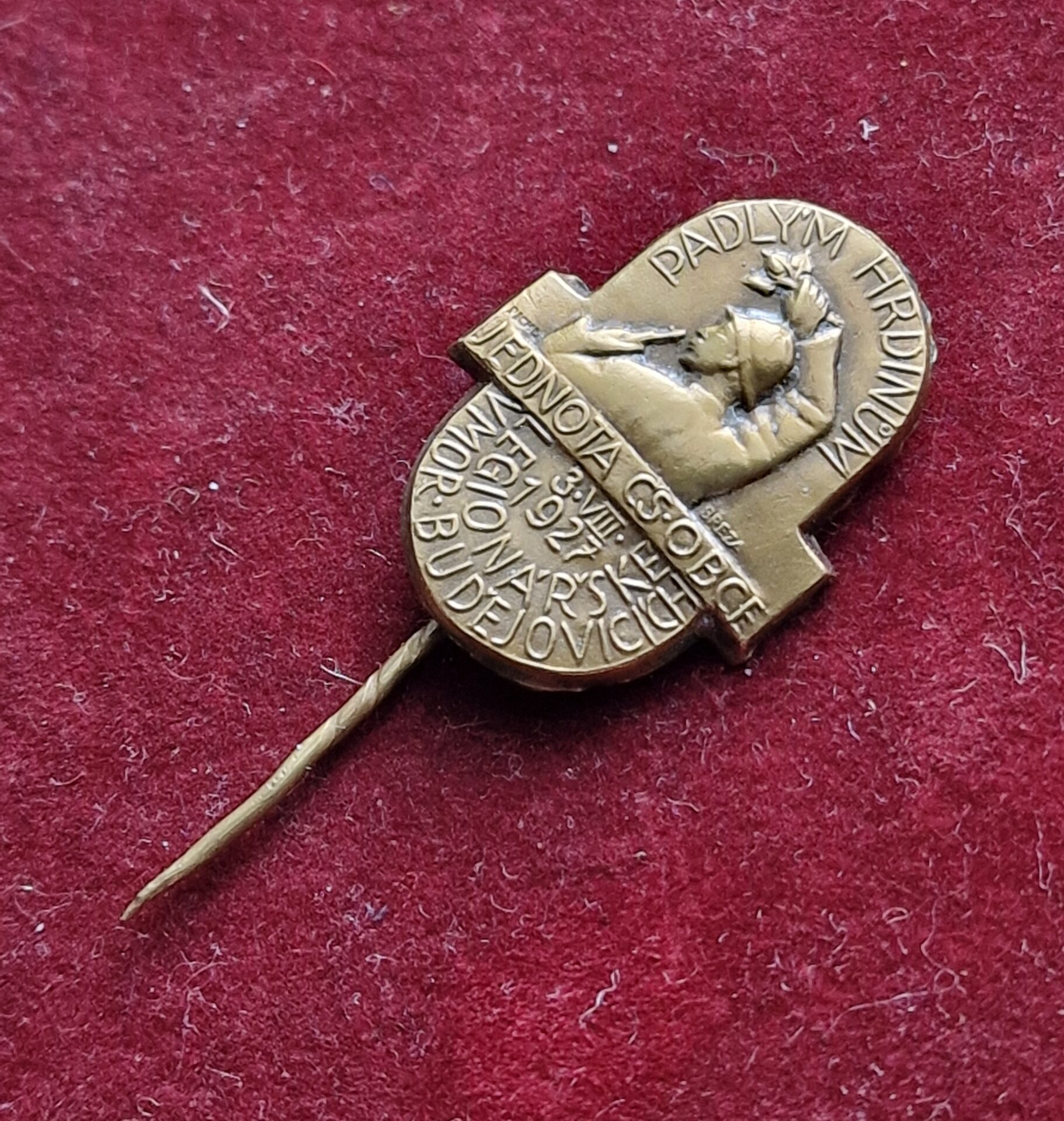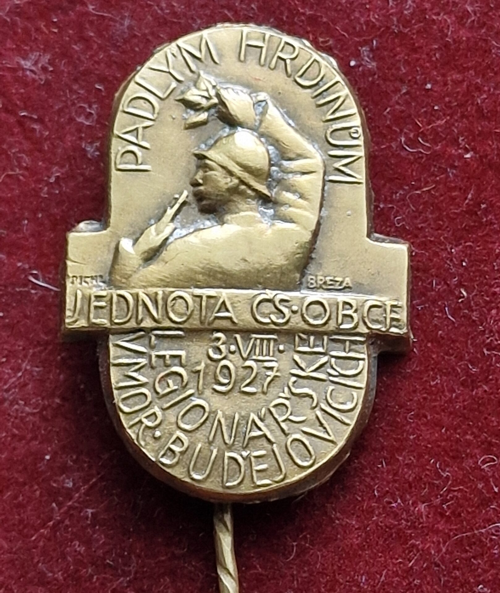 Prodám original starý odznak Padlým Hrdinům, Jednota ČS. obce Legionářské v Moravských Budějovicích 3.VIII. 1927.