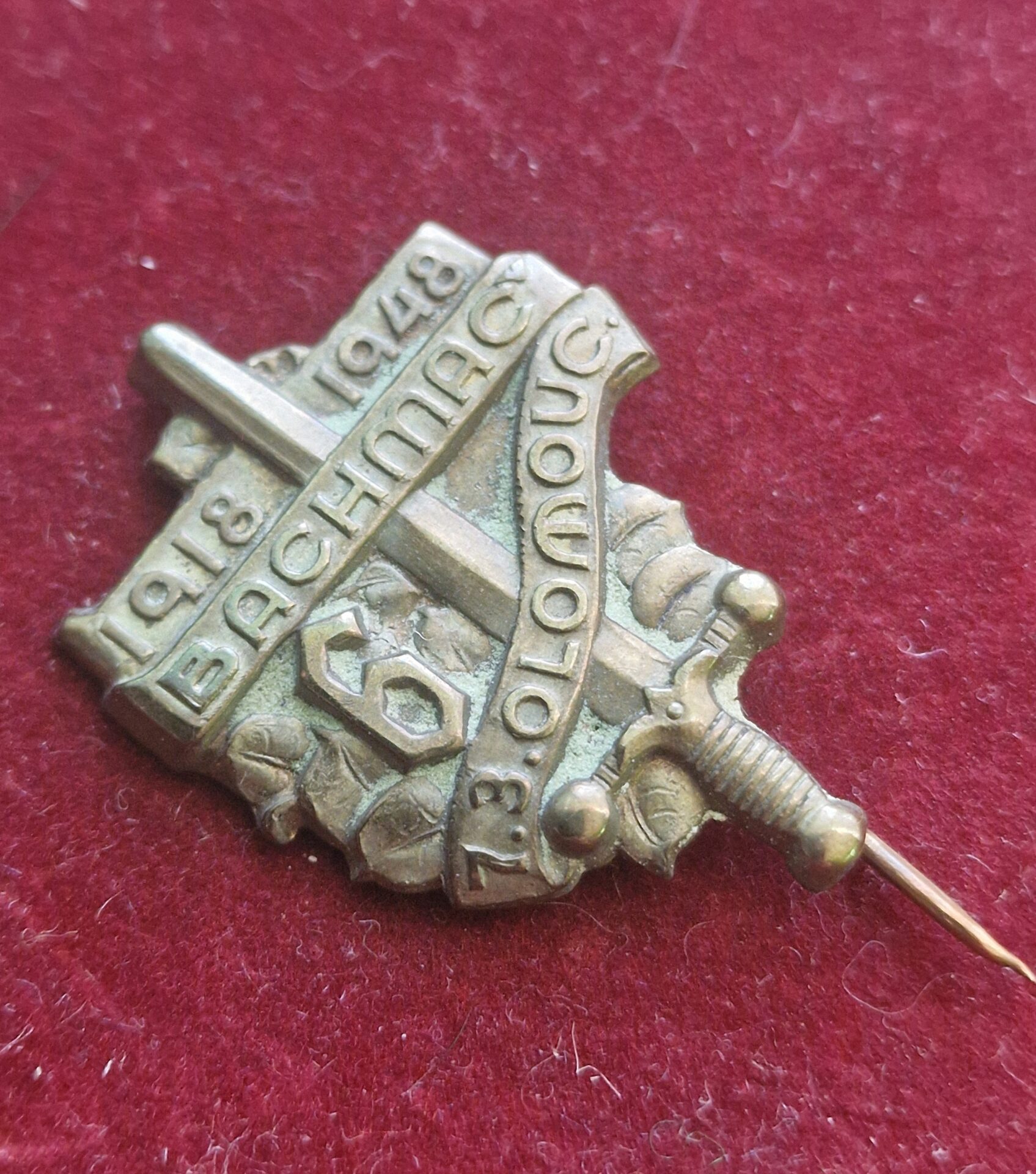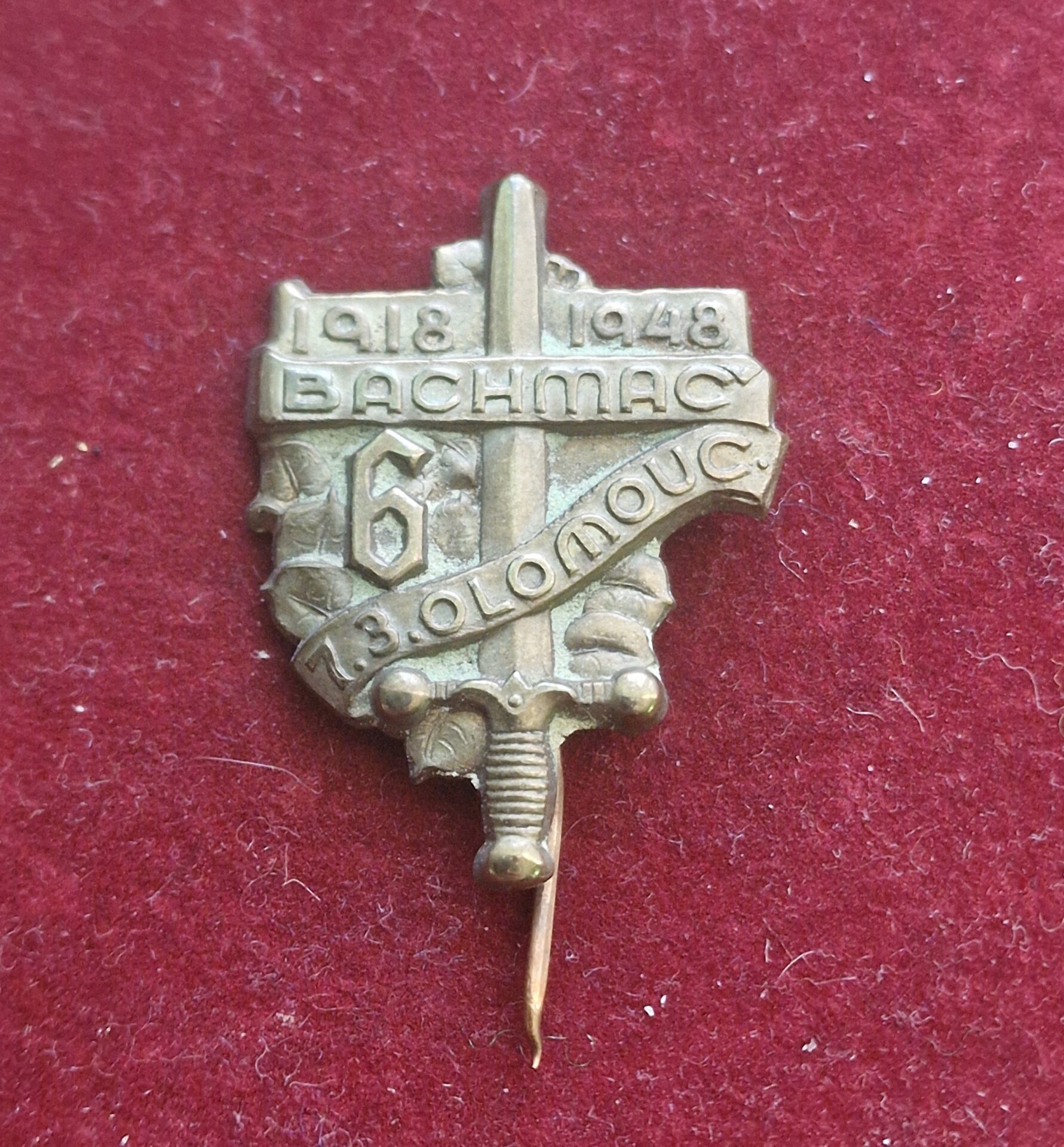 Prodám odznak ve velmi pěkném stavu, s nápisem Olomouc – BACHMAČ 1918 – 1948. Jedná se o pamětní odznak vydaný k 30. výročí založení 6. střeleckého pluku Hanáckého, který připomíná slavnou tradici československých legií a jejich boj u Bachmače v roce 1918. Odznak byl vydán dne 7. března 1948 při příležitosti oslav výročí v Olomouci.