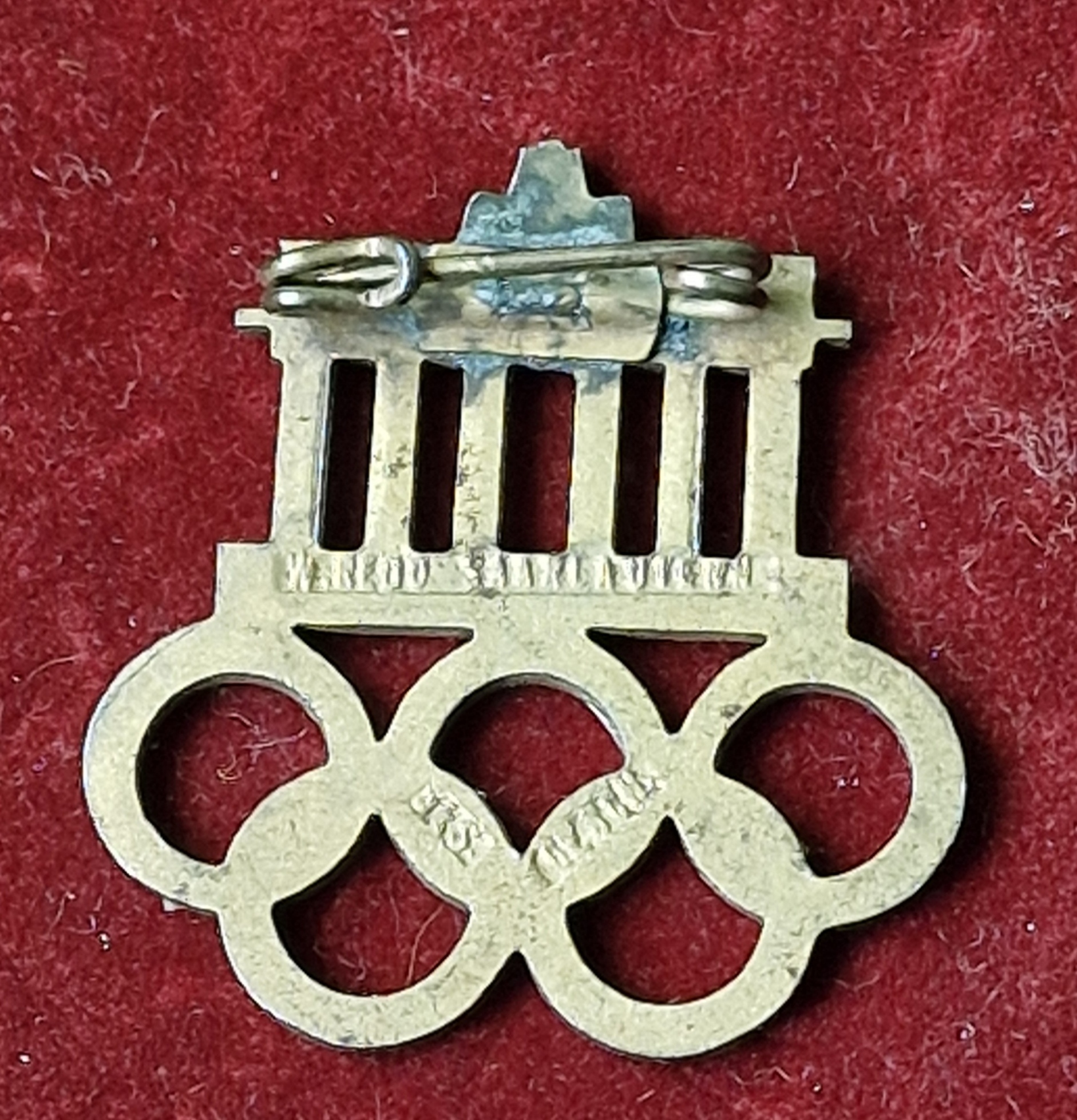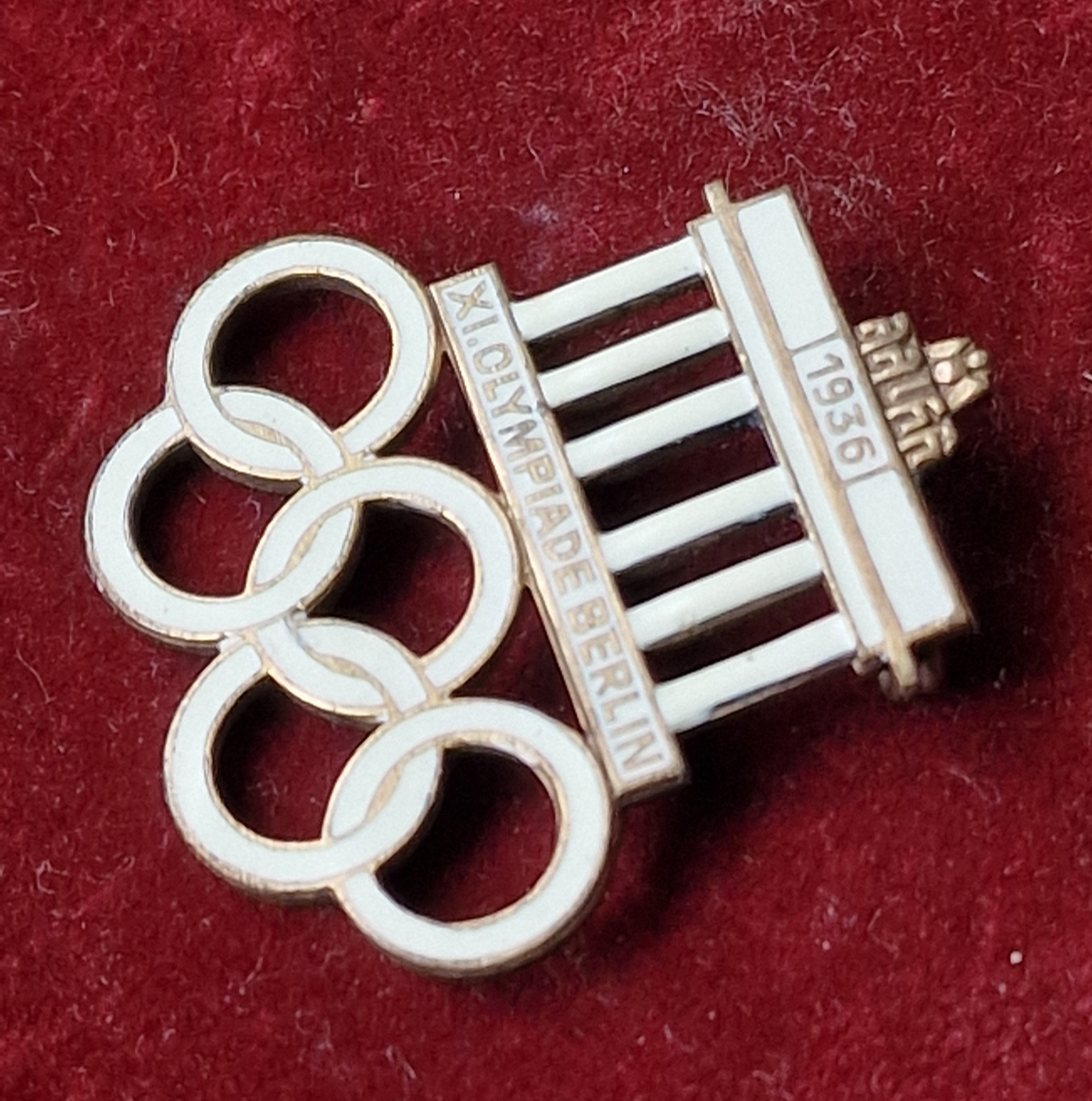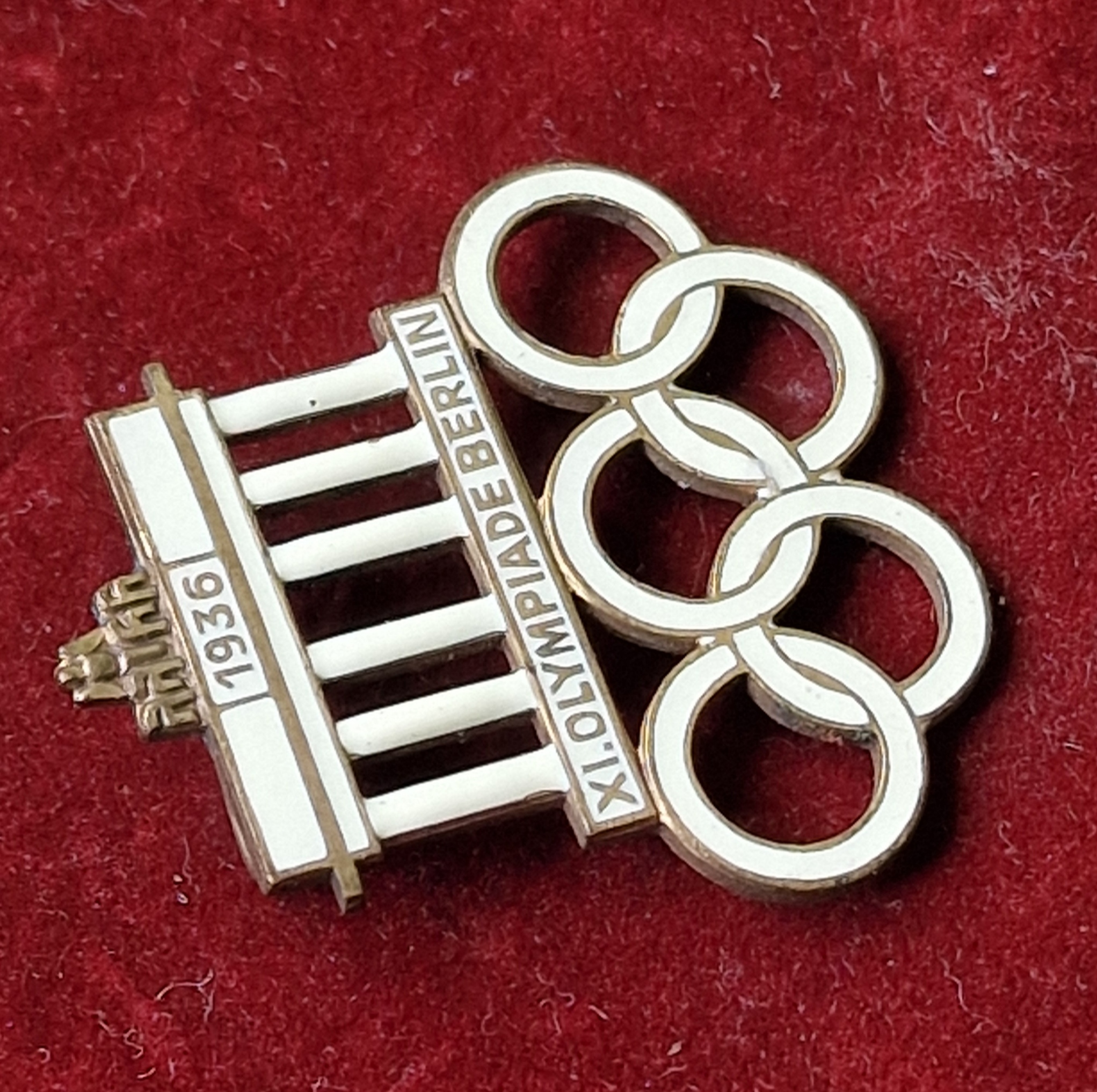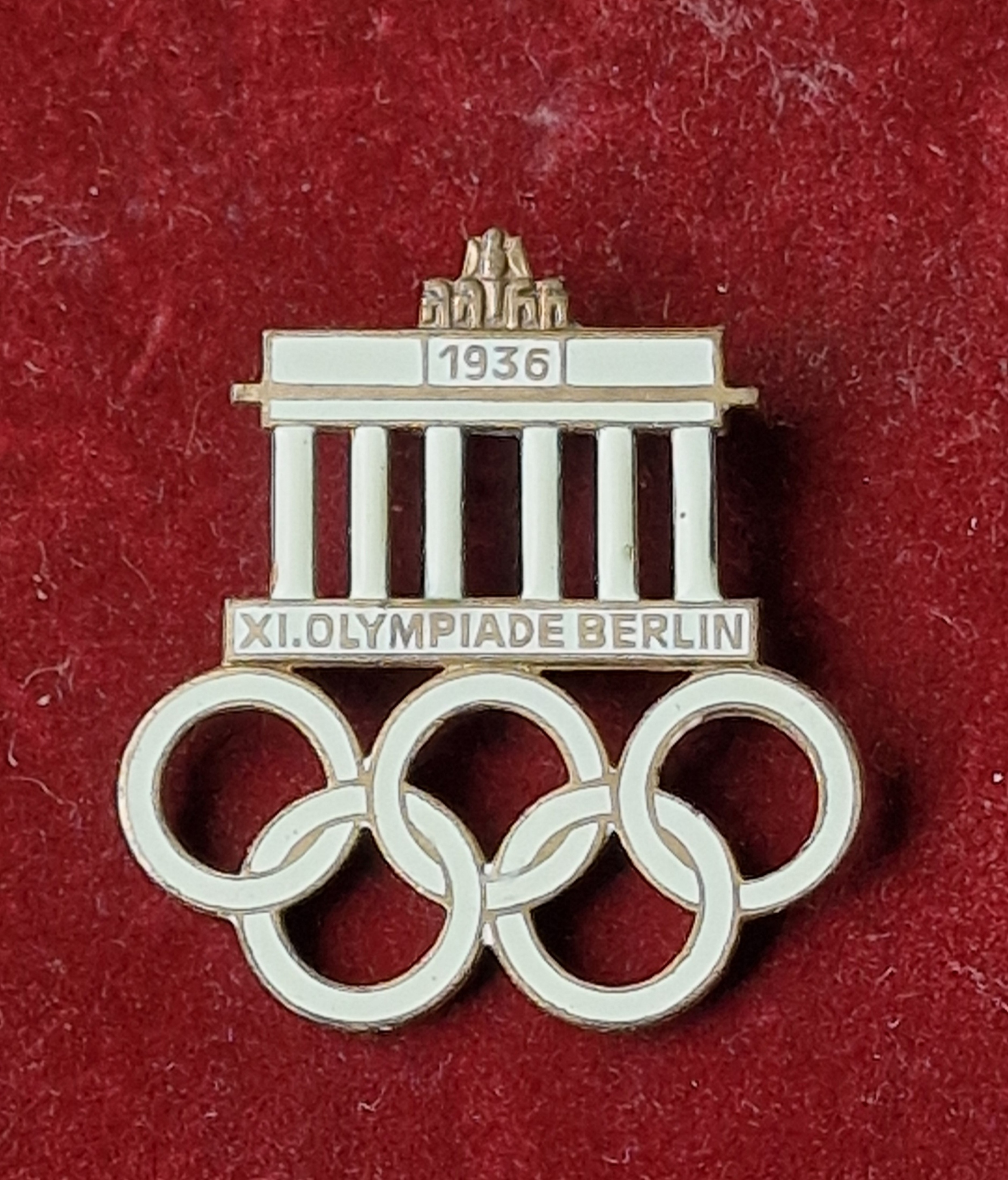 Prodám historický odznak z XI. Olympijských her v Berlíně 1936, s motivem Braniborské brány a olympijských kruhů.