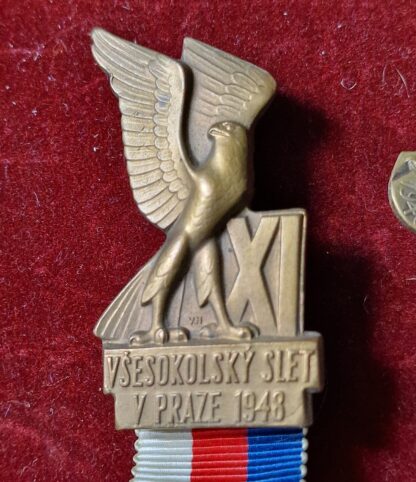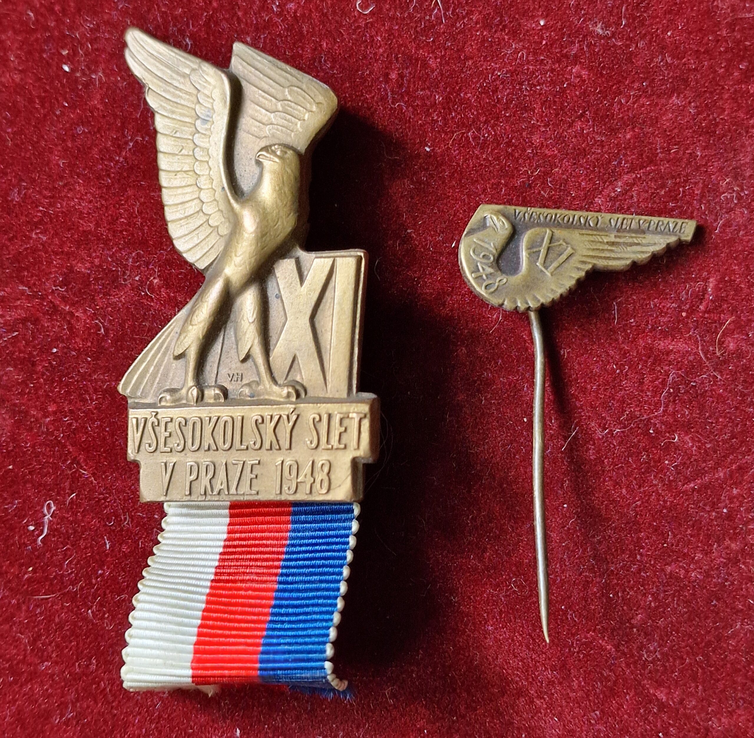 Odznak XI. VŠESOKOLSKÝ SLET V PRAZE 1948 + miniatura