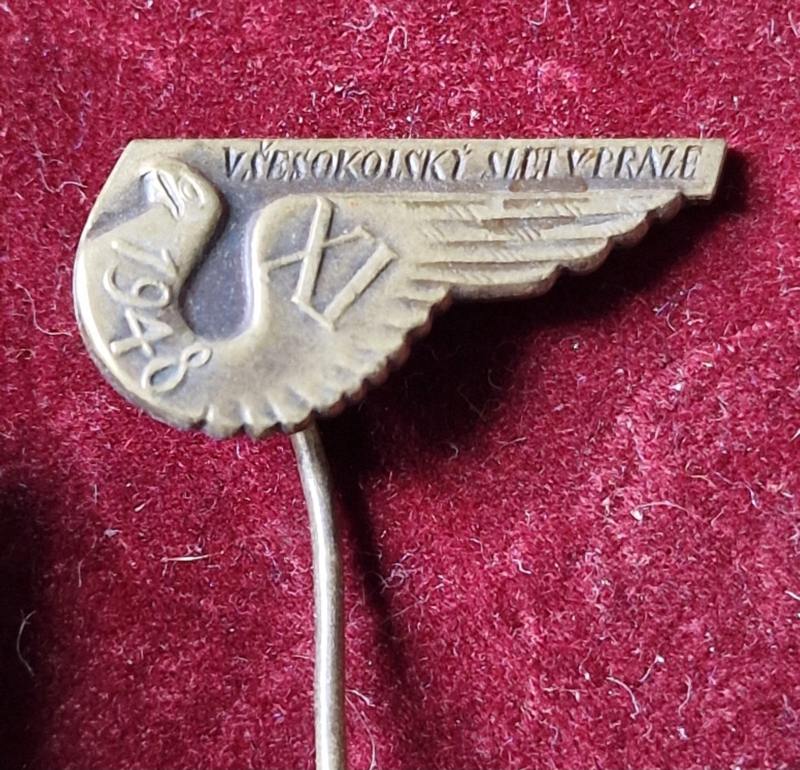 Prodám odznak všesokolský slet v Praze 1948 s miniaturou.