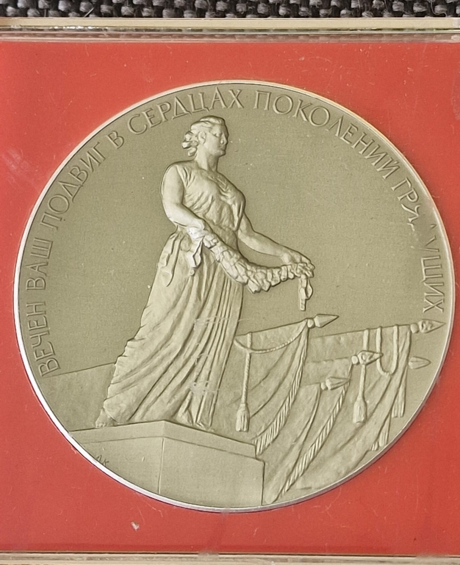 Nabízím k prodeji originální pamětní medaili vydanou v SSSR roku 1962 u příležitosti odhalení Piskarevského pamětního hřbitova v Leningradu.