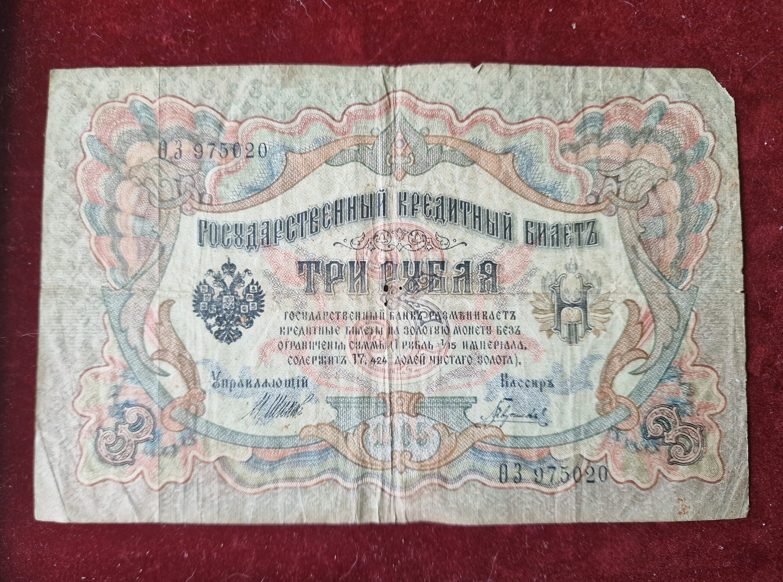 Prodám originální státní kreditní bilet v nominální hodnotě 3 ruble z období Ruské říše, emise 1905. Cenu nabídněte.