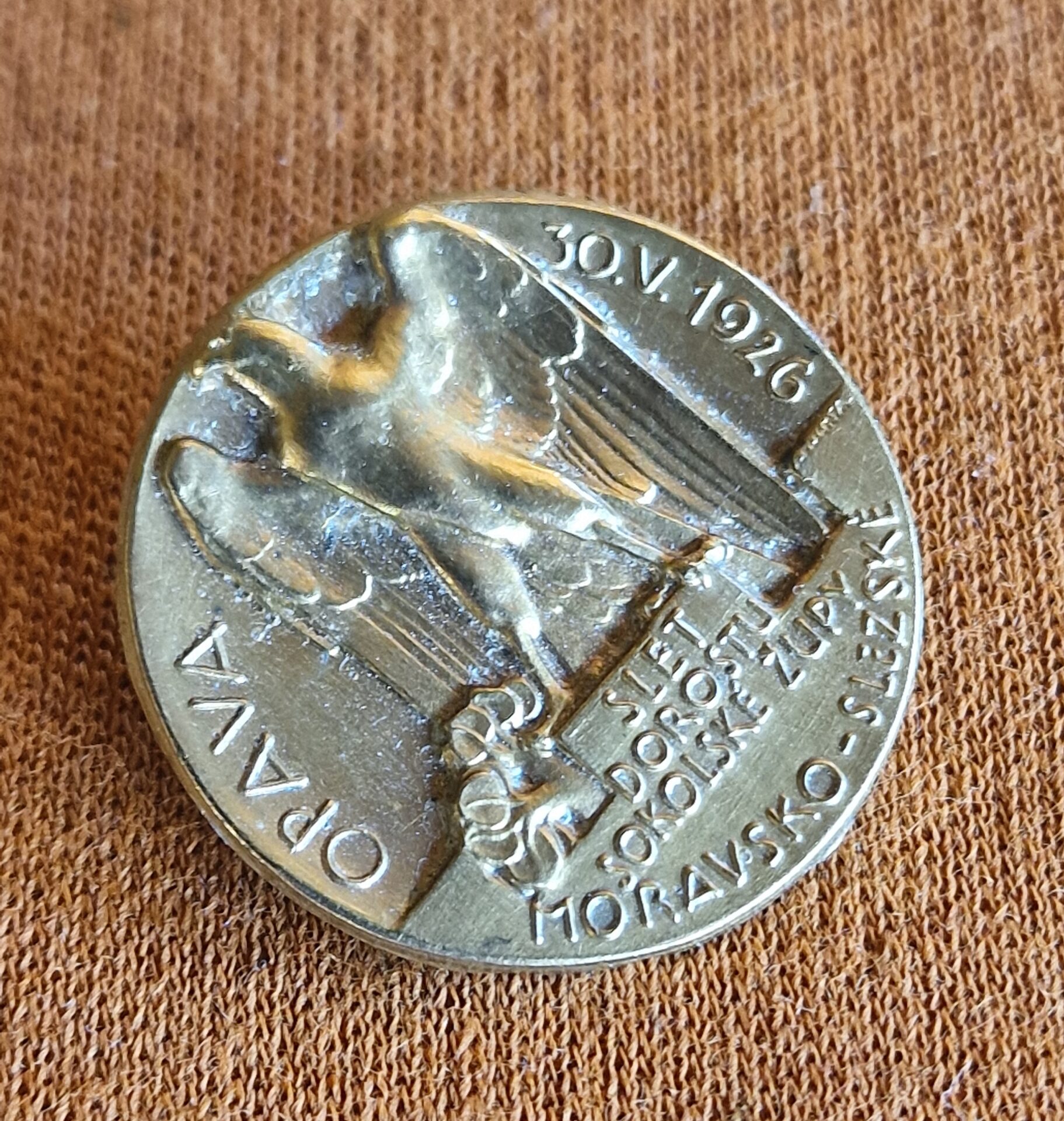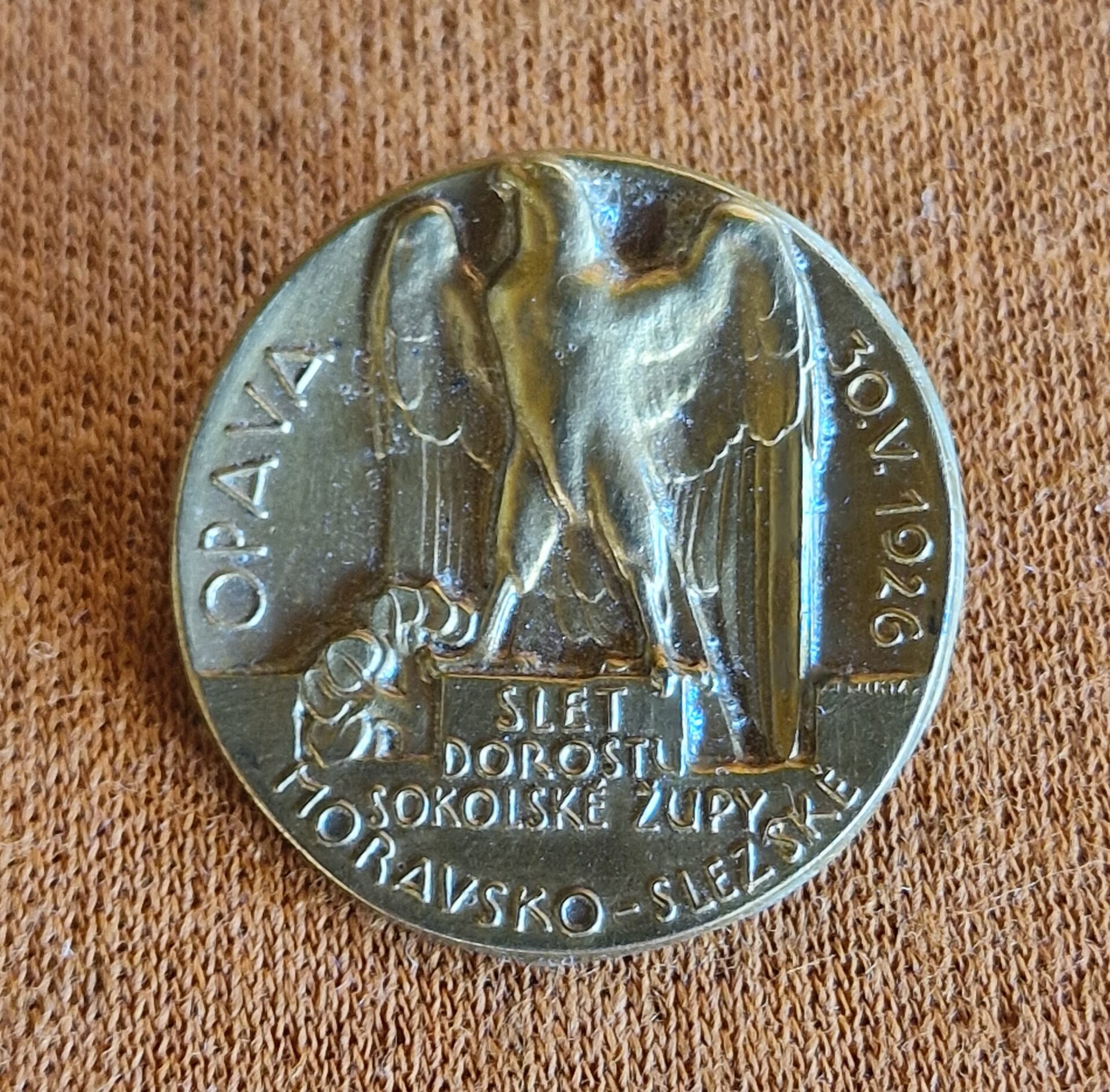Prodám Sokolský odznak z roku 1926, oslavující Slet dorostu Sokolské župy Opava.