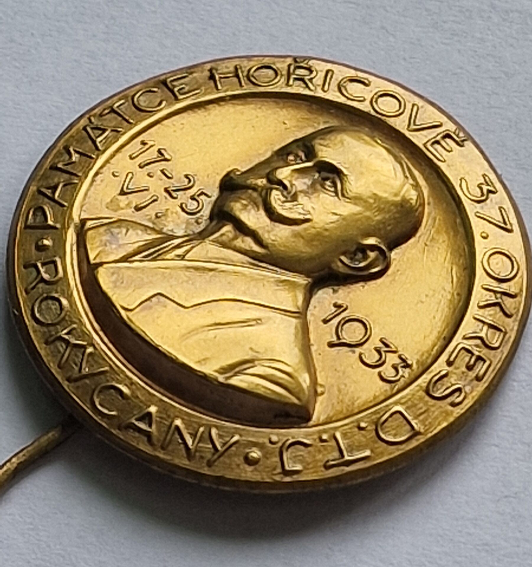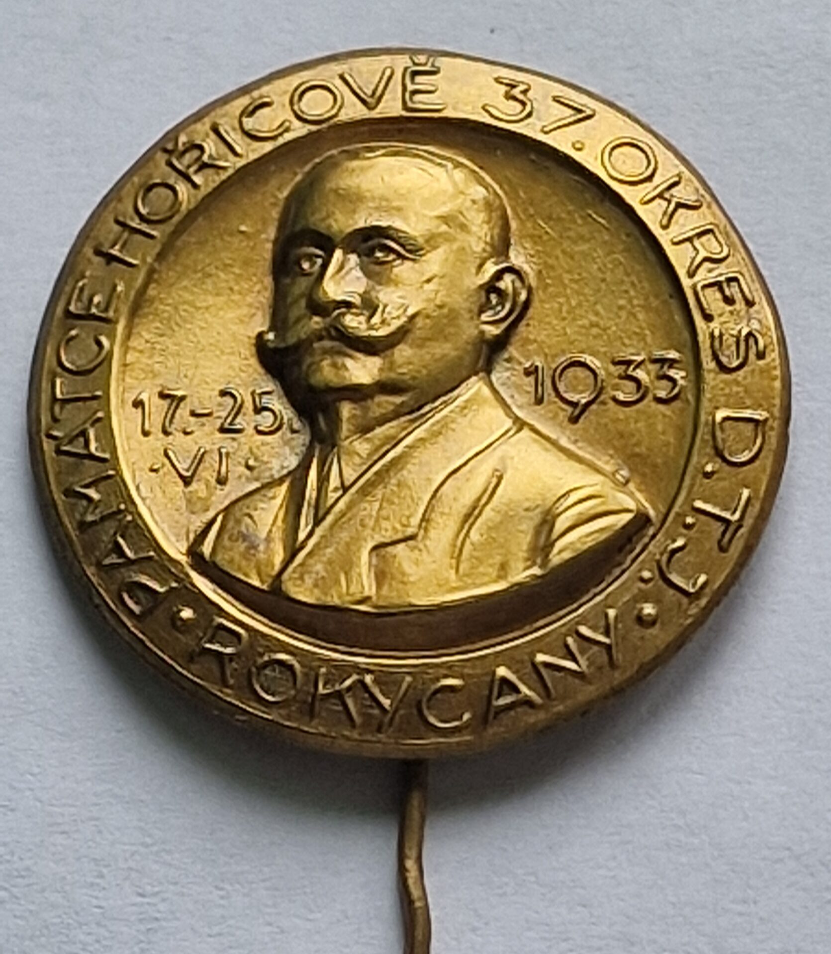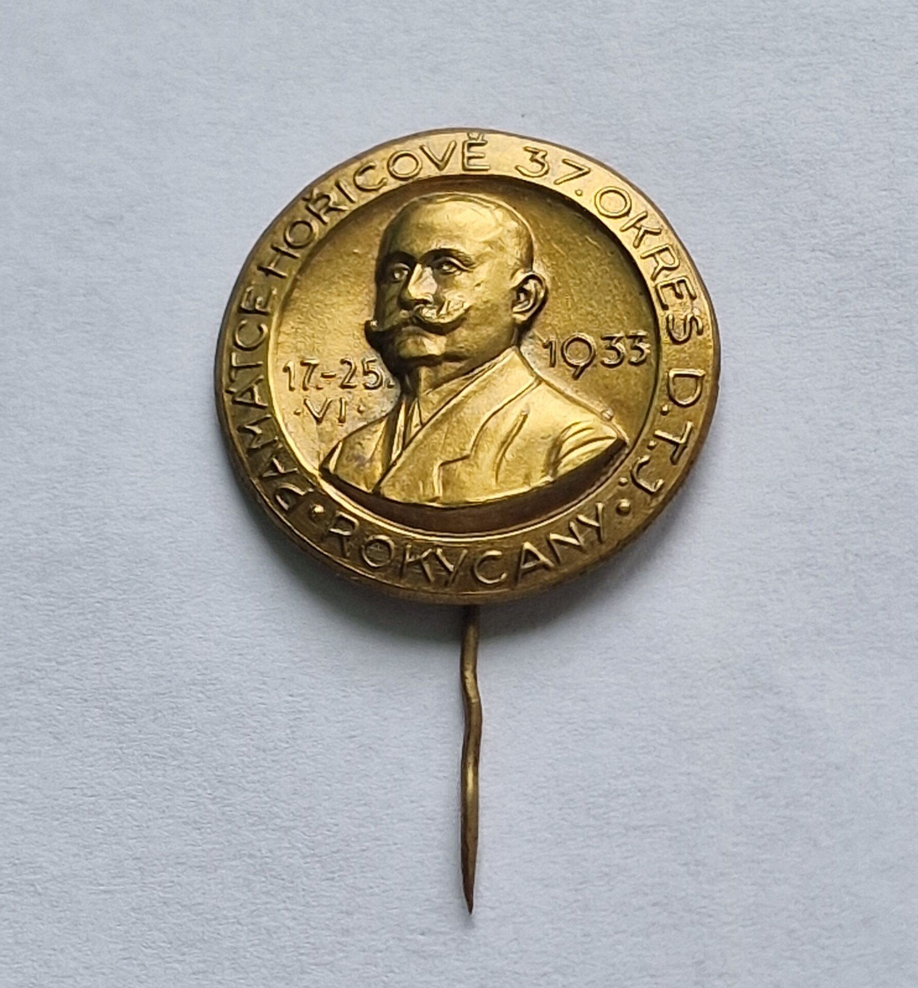 Starý odznak 37. Okres D.T.J. Rokycany – Památce Hořicově 1933